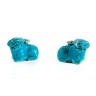 CHINE - Époque KANGXI (1662 - 1722) Paire de chimères assises formant porte baguettes d'encens en porcelaine émaillée bleu turquoise sur le biscuit. L 6 cm (Restaurations) Provenance : Vente 7 mars 1972, Palais Galliera, Maurice Rheims et René Laurin.