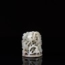 CHINE - Époque YUAN (1279-1368) Ornement de coiffure en néphrite céladon à décor ajouré de grues volant parmi les fleurs de lotus. H 6,4 cm (Égrenures et petits manques) Référence : Ornement similaire conservé au Metropolitan Museum, New York, n°02.18.392.
