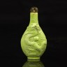 Flacon tabatière en porcelaine moulée émaillée verte d'un dragon à la recherche de la perle sacrée sur une face, d'un tigre et de bambous sur l'autre face. Marque Yongzheng.