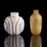CHINE - XXe siècleDeux flacons tabatières, l'un en agate rubanné grise, l'autre en agate beige.