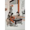 CHINE - XXe siècle Suite de quatre plaques rectangulaires en porcelaine émaillée polychrome représentant des jeunes femmes à l'intérieur jouant au go, lisant des livres et poèmes. H 36 × L 24 cm Encadré.
