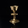 Calice en cuivre gravé et doré. Base circulaire moulurée, noeud godronné à six cabochons, chacun portant une lettre (S, I ,H ,E ,R ,V ?), surmonté d'une bague avec inscription AVE MARIA en lettres gothiques. Pays baltes ?, XVe siècle H 18 cm (Piqûres d'oxydation à la dorure) La forme de ce calice et son décor l'apparentent à certains modèles en orfèvrerie réalisés dans les Pays baltes comme celui conservé au château de Rundale en Lettonie (voir C. Ehrnrooth, R. Fagerström et E. Welander-Berggnen, Silver treasures from Livonia, Estonia and Courland, Helsinki, 1991, cat. 2.) (fig. a).