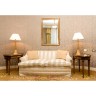 Sofa, 75x170x80 cm, two oval side tables 78x78x47 cm, and two lamps H 78 cm