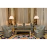 Canapé, 76x158x82 cm, deux fauteuils, 55x70x90 cm, table basse dessus marbre 50x115x56 cm, deux lampes, H 95 cm