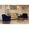Sofa 88 x 180 x 90 cm, two armchairs 78 x 70 x 70 cm, floor lamp H 170 cm, small table 60 x 35 x 33 cm