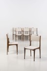 Set of eight chairs Wood and fabric Cassina edition Creation date: circa 1960 H 86 × W 45 × D 48 cm