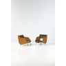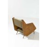 Carlo de Carli (1910-1999) Pair of armchairs Stained birch, brass and fabric Model created circa 1950 H 75 x L 60 x W 65 cm Bibliography: Domus, no. 268, 1952 unpaginated