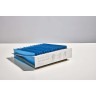 Assemblage of silkscreened cardboard strips forming a kinetic sculpture