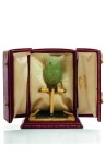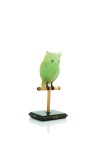 “Owl” statuette in carved fluorite, ivory perch, nephrite jade base