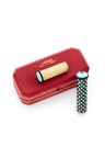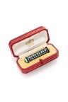 Lipstick case in 18k yellow gold (750‰) enamelled in navy blue and turquoise with geometric decoration known as ‘jeux de fond’ (background patterns), inspired by the work of Sonia Delaunay and her ‘simultaneous fabrics’ exhibited in her ‘Boutique simultanée’ located on the Pont Alexandre III during the 1925 World's Fair.