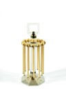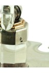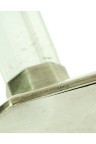 It consists of four parts: an octagonal silver base (with a metal underside), an octagonal column in cut rock crystal, a silver disc cut in a wave pattern around the edge to hold the champagne whisks, and finally a rectangular rock crystal holder