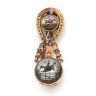 Châtelaine à décor équestre en or jaune 750‰ et platine ornée d'un fer à cheval et d'un sulfure. Elle retient par des motifs de sangle une montre boule, le cadran émaillé blanc à chiffres romains noirs, signé Henri CAPT à Genève, le dos orné d'un sulfure à décor de cavalier. (L'attache en argent). Travail du XIXe siècle. Dans son écrin à la forme (accidenté).