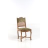 A moulded and carved natural wood chair with a flat, partially caned back decorated with shells and rocaille. Green velvet upholstery