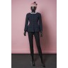 VESTE en tweed de coton bleu chiné, boutons ornés des cabochons en résine