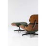 Thermoformed shells in glued laminated wood finished in veneer, lacquered steel and velvet