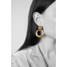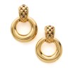 Pair of ear clips in 18k (750‰) yellow gold adorned with round-cut rubies, sapphires and emeralds, close-set, each holding a tasseled ring (small abrasions)
