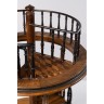 Compagnon's masterpiece in walnut featuring an English spiral staircase with a balustrade. On the arrival landing, the floor is enhanced by a marquetry of rhombuses in wood of various species.