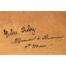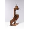 A Compagnon's masterpiece in walnut featuring a model of a preaching pulpit. A curved staircase with a sloping ceiling and two panelled railings gives access to the octagonal platform. It is fitted with a bowl with a lamp base and embered panels. The lampshade with assembled panels is topped by a vase. Complete with a door.