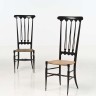Chiavari Spada Paire de chaises Bois laqué et cannage Date de création : vers 1950 H 114 × 41 × 48 cm Bibliographie : Domus 1950-54, Volume III, Edition Taschen, Domus 1950, n° 243, p.39 800 / 1 200 €