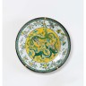 Large porcelain dish with polychrome enamelled decoration in the green family style of two dragons facing each other around the flamed pearl, the fall decorated with a frieze of flower and lotus branches. On the reverse, an apocryphal cyclical mark of Kangxi (wear to the enamel) Diam. 40.4 cm