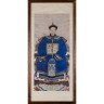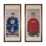 CHINE - Vers 1900 Ensemble de deux portraits, encre et couleurs sur papier, représentant un couple de dignitaires assis. Dim. à vue:150 x 68 cm Encadrées sous verre (Manques et restaurations)