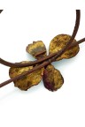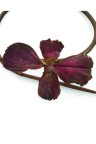 Open torque necklace adorned with a naturally treated clematis flower