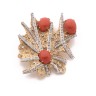 "Shell" clip in grainy 18k yellow gold (570‰) and grey gold, enhanced with round diamonds and three coral cabochons Dimensions : 7,5 x 6 cm Gross weight : 53,8 g