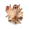 "Shell" clip in grainy 18k yellow gold (570‰) and grey gold, enhanced with round diamonds and three coral cabochons Dimensions : 7,5 x