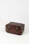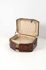 Leather trunk with brass hinges, cut edges, opening from the top and with two facade door panels, with two handles (dents and small scratches, the inside revamped)