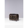 A "Nanban" casket of rectangular form with rounded lid, with lacquered and mother-of-pearl inlaid decoration of figures and shrubs, the sides with geometric friezes, resting on four ball feet. Wrought iron lock with moraillons and handle on the lid