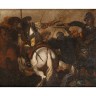 ƒ École Napolitaine de la fin du XVIIe siècle, suiveur d’Andrea di Leone Choc de cavalerie Toile maroufle sur panneau 28 × 34 cm