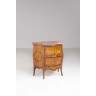 A rosewood and violetwood chest of drawers with star decoration, opening with two drawers, the top of Spanish Brocatelle marble resting on curved uprights finished with cambered feet; (accidents and restorations).