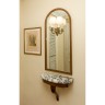 Consols with marble top, a mirror and wall lamps