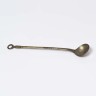 Cuiller en laiton à long manche avec extrémité ornéed'une Vierge à l'Enfant et munie d'un anneau.