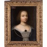 Dans le goût de DUMONSTIER Portrait de dame de qualité Panneau de noyer, une planche, non parqueté 34 × 25,5 cm Porte une étiquette en haut à gauche : 1636 Restaurations anciennes Dans un cadre en bois sculpté et doré, travail français du XVIIe siècle