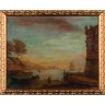 In the style of Lacroix de Marseille Couple of fishermen in front of a harbour