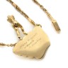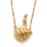 Pendant in gilt bronze adorned with a nude climbing stylized stairs in the shape of a hammered shell and its chain.