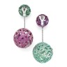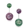 Original pair of ear pendants "Openwork spheres" in titanium entirely paved with tsavorites, pink sapphires (one missing) and small diamonds, attachments in 18k grey gold (750‰)