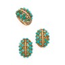 Half jewelry set in yellow openwork gold, adorned with turquoise cabochons (small lacks), including a ring and a pair of ear clips Ring size: 50 Gross weight: 29,6 g