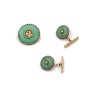 Demi-parure set with jade, comprising a pair of cufflinks and a round brooch