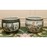 Two red chinese decorated earthenware flower pots