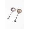 Two silver sprinkling spoons, both monogrammed, with openwork scroll decoration. Weight 140 gr approx.