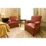 Pair of armchairs, 84x70x80 cm, a round side table, H 60 x D 60 cm and rectangular table