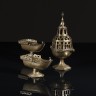 Deux navettes en laiton en forme de nacelle avec galerie ajourée, pied circulaire mouluré. Flandres, XVIIe siècle H 15 cm