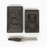 Deux pierres à encre et un pinceau à corps céladon, Chinepierres à encre: 23 x 14 cm