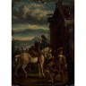 Ecole du Nord de la fin du XVIIIe siècle, Cavaliers devant une auberge Paire d'huiles sur panneau (Un panneau bombé et petit manque ) 22 × 16 cm