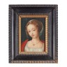 Ecole Francaise dans le goût du XVIe siecle Jeune fille à la coiffe avec une robe blanche Panneau ( soulèvements et manques) 20 x 1...