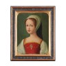 Ecole Francaise dans le goût du XVIe siècle portrait de jeune fille à la robe rouge Panneau 26 x 20 cm