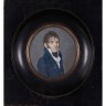 French school, circa 1820 Portrait of a man in a blue suit facing right Round miniature, blackened wooden frame D 5.5 cm