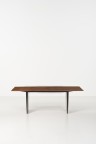 Table Acajou, laiton et bois exotique Édition Dunbar Date de création : 1962 H 74 × L 213-302 × P 99 cm